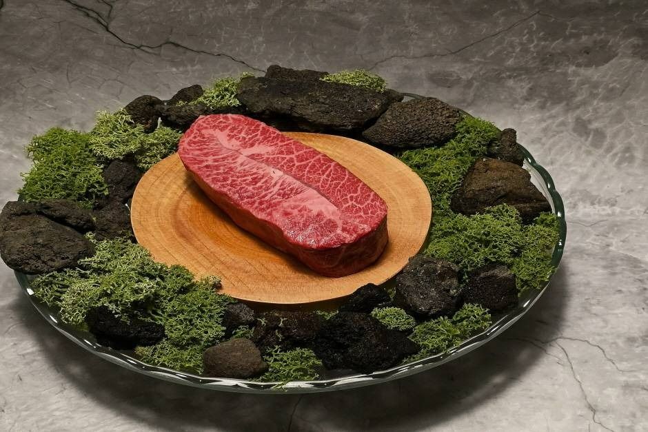 105405 Magok, a restaurant located in the Ganseo-gu district of Seoul, is famous for its charcoal grilled steak and its reinterpretation of side dishes, which is a significant part of Korean food culture. The steaks here are prepared through a meticulous process of wet-aging, seasoning, color development, confit, and charcoal grilling, with lunches served as course meals only.