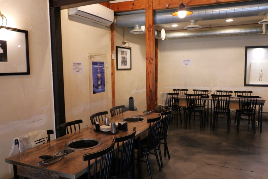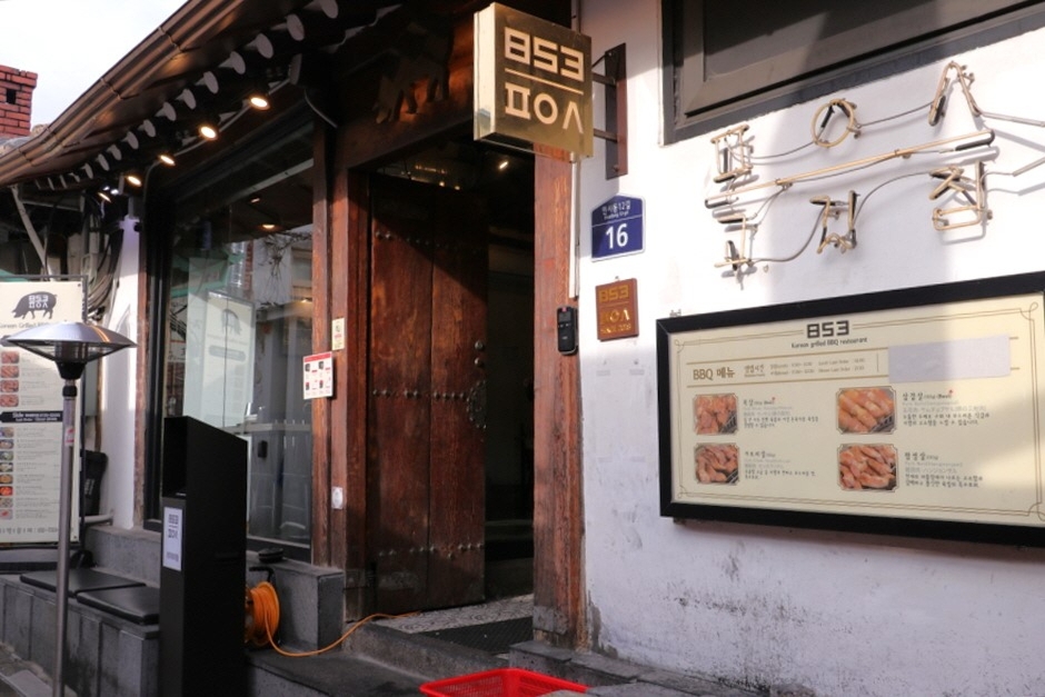 853 is a pork barbecue restaurant located in a renovated hanokin Insa-dong, offering various cuts of pork such as shoulder, belly, blade-end fatback, and pork neck. They use thick cuts of domestically sourced pork and grill them to perfection, ensuring they are juicy and flavorful. Customers can enjoy dipping their meat in one of four sauces: Himalayan rock salt, mustard seeds and wasabi, salted cutlassfish intestines, and barley mixed paste. Their flying fish roe riceball mixed with pickled radish salad, burdock root, flying fish roe, perilla leaves, and mayonnaise pairs perfectly with the meat.