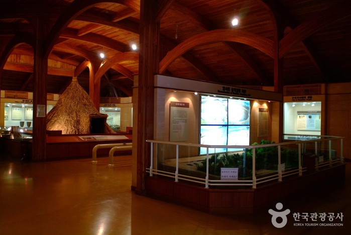 The archaeological sites in Amsa-dong, Seoul, were a collective settlement where people lived during the Neolithic Age about 6,000 years ago and became known to the world after the sand dunes along the Hangang River caved in during the great flood of 1925, exposing numerous pieces of comb-patterned pottery. The area designated as a historic site in 1979, and excavation of the site took place from 1981 to 1988. The cultural heritage protection area was expanded to a total area of 78,133㎡. Currently, nine Neolithic dugout huts and one experiential dugout hut have been restored. The exhibitions currently open to the public are Exhibition Hall 1, which displays a restoration of a Neolithic Age dugout, and Exhibition Hall 2, which displays various panels and models to help understand the prehistoric era as a whole.