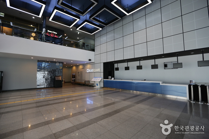 Blue Square is a multipurpose performance venue located in Hannam-dong. It includes Shinhan Card Hall, a performance hall dedicated to musicals with 1,776 seats, and Mastercard Hall, a multipurpose performance hall with 1,400 seats. Blue Square also includes the Book Park, which has a collection of nearly 75,000 books, and a café with a terrace that looks toward the Namsan Mountain. Many visitors come to the Blue Square to see its collection of popular musicals and other performances.