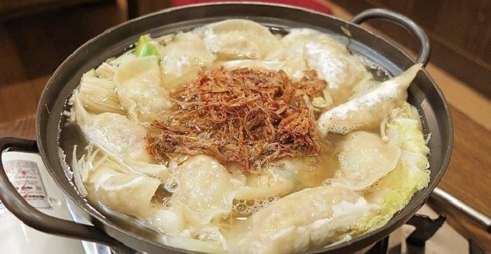 Bongsanok, located near the Seoul Arts Center, specializes in manduguk (mandu soup), known for its signature spicy twist with a generous sprinkling of chili pepper powder. The restaurant’s celebrated manduguk features Hwanghae-do-style mandu, stuffed with a savory blend of minced meat, kimchi cabbage, bean sprouts, and chives, all served in a rich beef brisket broth that has been meticulously boiled for twelve hours.