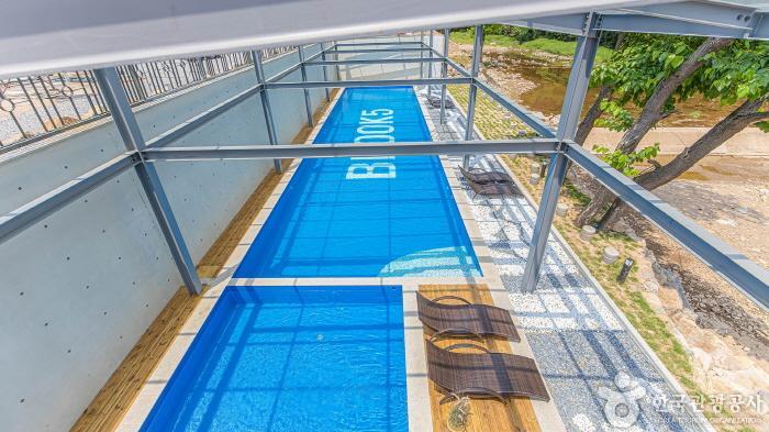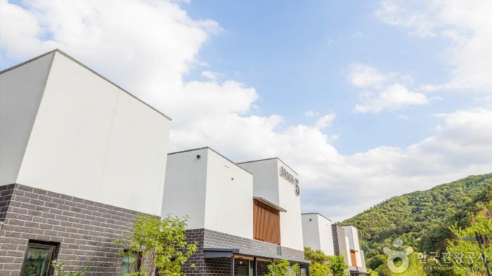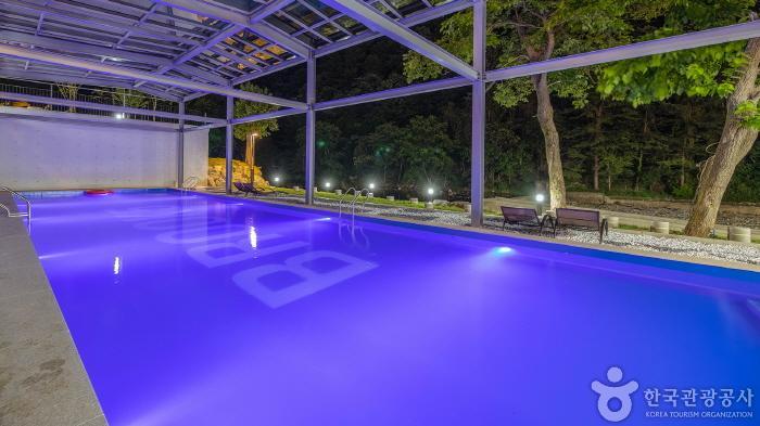 Located at the foot of Kalbong Mountain in Gapyeong, BROOK5 is a large-scale pension that offers 20 different room types, including pool villas, kid-friendly rooms, and standard guest rooms. There are five pool villas, and two kid-friendly rooms with an indoor jungle gym, baby bathtub, milk bottle sterilizer, and potty training seats. Each room has a kitchen and barbecue area. Only some of the guest rooms have whirlpool bathtubs, so make sure to check the availability in advance. There is a heated swimming pool for children and adults available all year round, a cafe next to the pool, and Dumilcheon Steam right in front of the pool, which is a great place to swim in the summer.