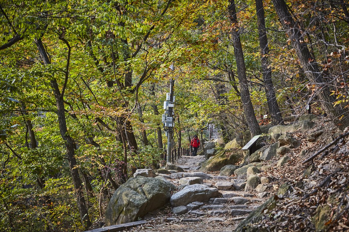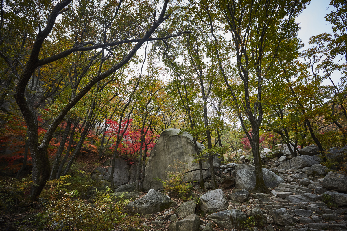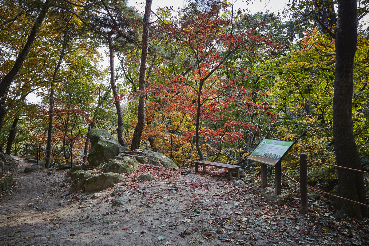 Bukhansan Mountain was officially designated as a national park in 1983. Bukhansan National Park covers both Bukhansan and Dobongsan Mountains, and spans a total area of 80.699 ㎢. At the top of Bukhansan Mountain are Baegundae Terrace (835.6 m), Insubong Peak (810.5 m) and Mangyeongdae Terrace (799.5 m), which gave the mountain the nickname “Samgaksan” or the “three-horned mountain.” The mountain had other names: Sambongsan (mountain with three peaks), Hwasan (flower mountain), and Buaak (mountain shaped like a person giving a baby a piggyback ride). The current name, Bukhansan, was given after the Bukhansanseong Fortress was built under King Sukjong of the Joseon dynasty.