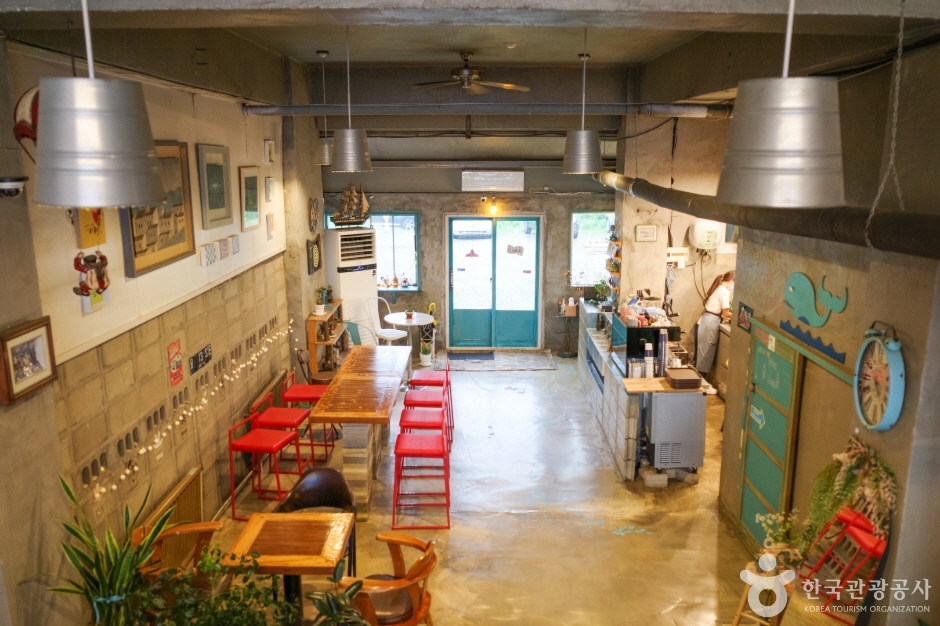 Café E Bada, located on the picturesque Daebudo coast, offers visitors unobstructed views of the sea. Among their standout menu items is the Daebudo grape tea, a beverage crafted to capture the deep flavor of Daebudo grapes. The Flower ade is another unique offering, turning a violet hue when blue butterfly pea flower tea is mixed with lemonade. For dessert, visitors can indulge in coffee bean-shaped coffee bread and cheesecake, enhancing their seaside café experience.