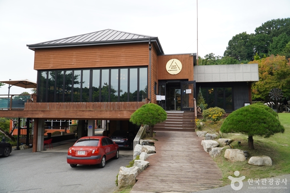 Café Story is a dining café with an outdoor terrace that overlooks Paldangho Lake. Their signature dish, black garlic seafood cream pasta, complements a diverse menu that includes pasta, pizza, steak, and various café options. With an accompanying dog park, it’s an ideal spot for visitors to enjoy with their furry friends.