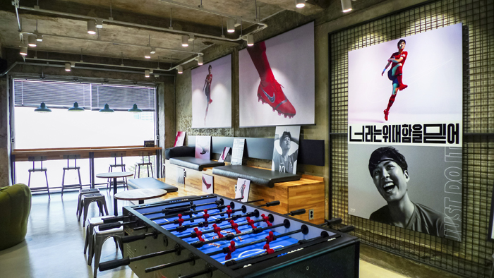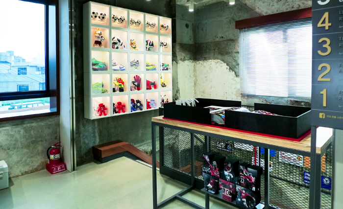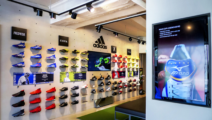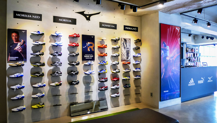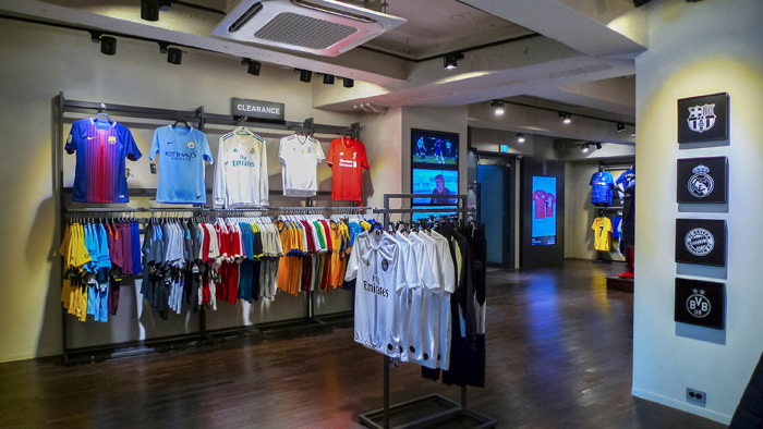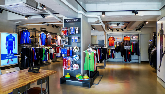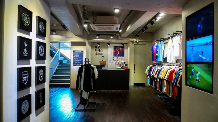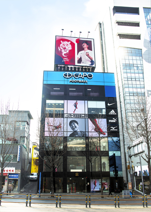 Located in Eulji-ro, Jung-gu, Seoul, Capo Football store is the largest football store in Korea. It stocks football boots of various levels, plus fan wear, uniforms, and training wear. On the 5th floor, a customer lounge provides free coffee, a football book cafe, a PlayStation for enjoying FIFA games, table soccer, and an exhibition of capo collections.