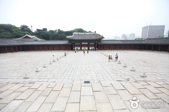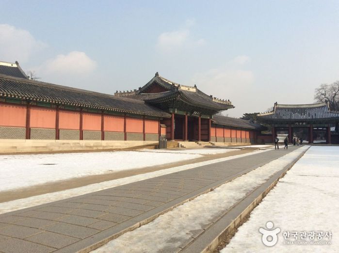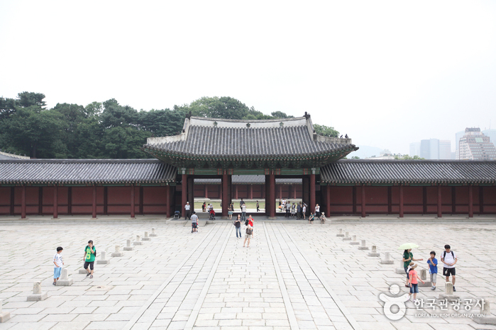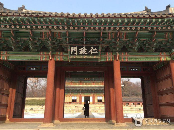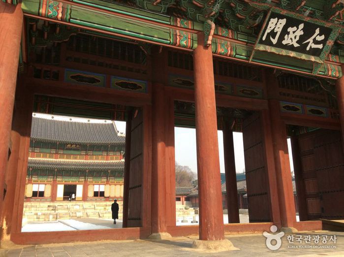 Serving as the main gate of Injeongjeon Hall, Injeongmun Gate was established in 1405 (5th year of King Taejo’s reign during the Joseon dynasty). Later on, the gate was destroyed by multiple fires during the Imjin War (Japanese invasion of Korea in 1592), therefore current form of the establishment displays designs that are more often seen in the late 19th century’s. In addition, a lot