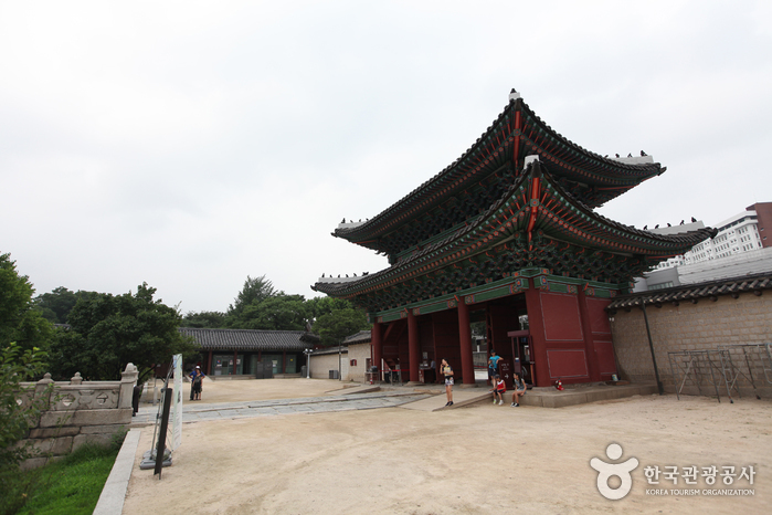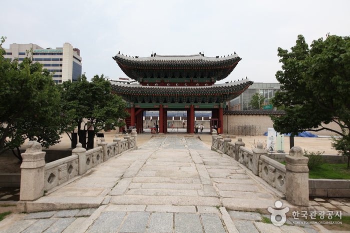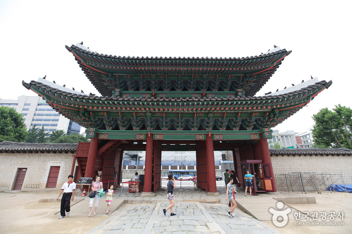 Serving as the main gate of Injeongjeon Hall, Injeongmun Gate was established in 1405 (5th year of King Taejo’s reign during the Joseon dynasty). Later on, the gate was destroyed by multiple fires during the Imjin War (Japanese invasion of Korea in 1592), therefore current form of the establishment displays designs that are more often seen in the late 19th century’s. In addition, a lot