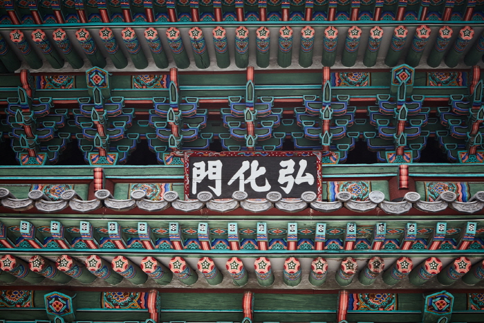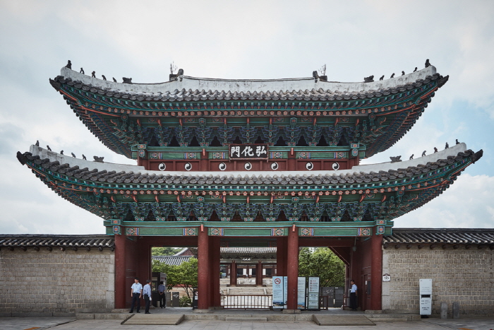 Honghwamun Gate is the main gate of Changgyeonggung Palace. It has three opening gates in the front and two to the side with a sophisticated locking mechanism.