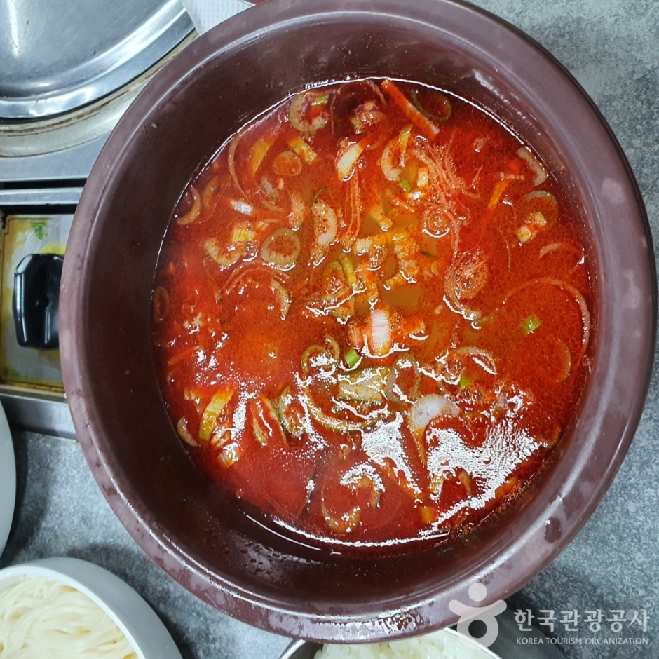 Jinju Hoegwan is a renowned kongguksu (noodles in cold soybean soup) eatery near City Hall Station. Kongguksu is a traditional Korean summer dish made by boiling and grinding soybeans into a creamy broth, served with noodles, offering a refreshing and nutty flavor. Kongguksu is available from March to November. Their staff-recommended menu includes kimchi bokkeumbap (kimchi fried rice), freshly roasted by the staff, along with kimchi jjigae and samgyeopsal (pork belly).