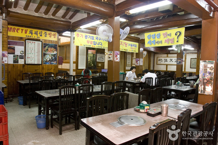 Located near City Hall Station, Korea Samgyetang specializes in samgyetang. Samgyetang is a traditional healthy dish made by simmering cleaned young chicken in a broth with ginseng, jujube, and glutinous rice. The light and tender texture of the stewed chicken and the ginseng-flavored glutinous rice porridge is excellent. Ogolgye tang (silkie chicken soup) and jeonbok samgye tang (abalone and ginseng chicken soup) are also favorites among patrons. This restaurant was selected for the Michelin Guide Seoul in 2023.