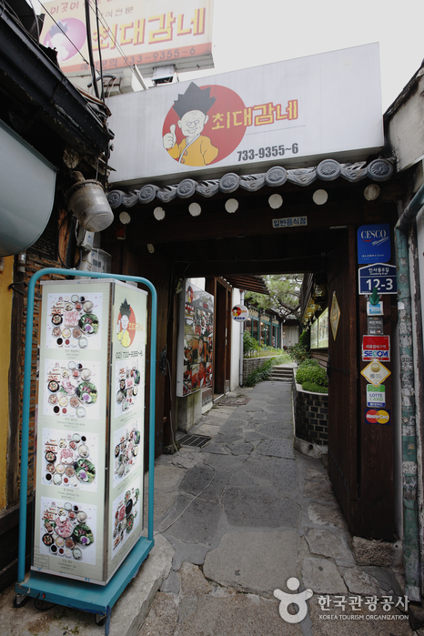 Choedaegamne is a traditional Korean restaurant located in a hanok in Insa-dong, with a garden and a pond, and has been in operation for over 100 years. One of their popular dishes is the sangchu shabu jeongsik (shabu with rice in a cabbage set menu), where vegetables and meat are cooked in a broth and then enjoyed with noodles, served with a small rice ball on lettuce. They also offer a so galbijjim jeongsik (steamed beef ribs set menu) and bulgogi jeongsik (bulgogi set menu), served with lotus leaf rice and soybean paste jjigae. After the meal, guests can enjoy tea in the garden.