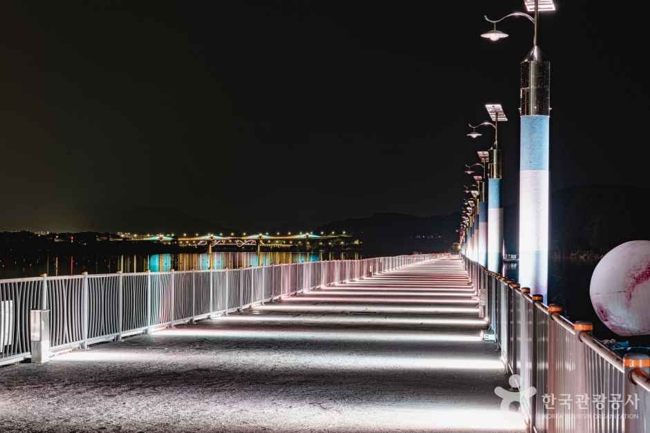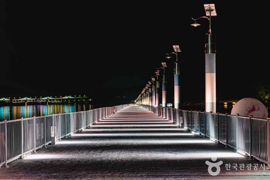 Tangeumho Rainbow Road is a floating bridge constructed for the 2013 World Rowing Championships. Dazzling with colorful lights at night, it now serves as a path for walking and cycling. Each section offers a unique night view, music and photo spots. Visitors can enjoy diverse activities such as cultural performances and stamp tours.