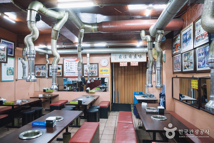 Jingogae is a standing store that opened its doors in 1963. Its signature dish is the eobok jaengban (boiled meat slices hot pot), where thick slices of meat are stacked along with vegetables, mandu, rice cakes, and eggs, all boiled together. In addition to this, they also serve dishes such as gejang jeongsik (marinated crab set menu), gopchang jeongol (small intestine hot pot), galbitang (galbi soup), and yukgaejang (spicy beef soup). The spicy and richly seasoned yangnyeom gejang (spicy marinated crab) is also a popular menu item, which when paired with rice, enhances its flavors even further.