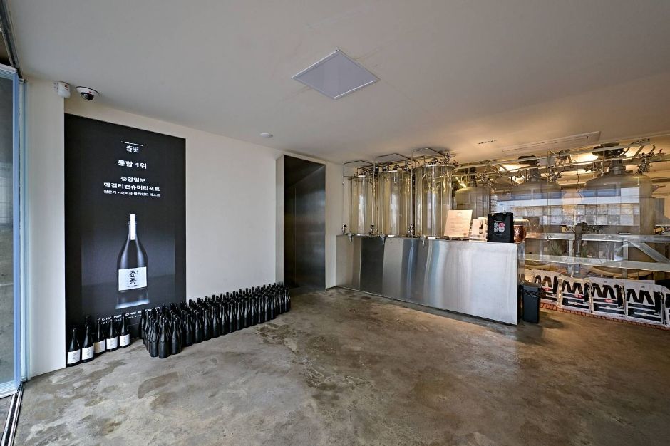 Chungpoong Brewery, a specialized brewery producing makgeolli, offers brewery tours and tasting sessions, conveying the value of Korean alcohol. Through these programs, the brewery shares Korean alcohol culture and provides information about traditional Korean alcohol. Visitors can also enjoy a dining and alcohol experience here.
