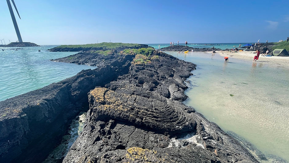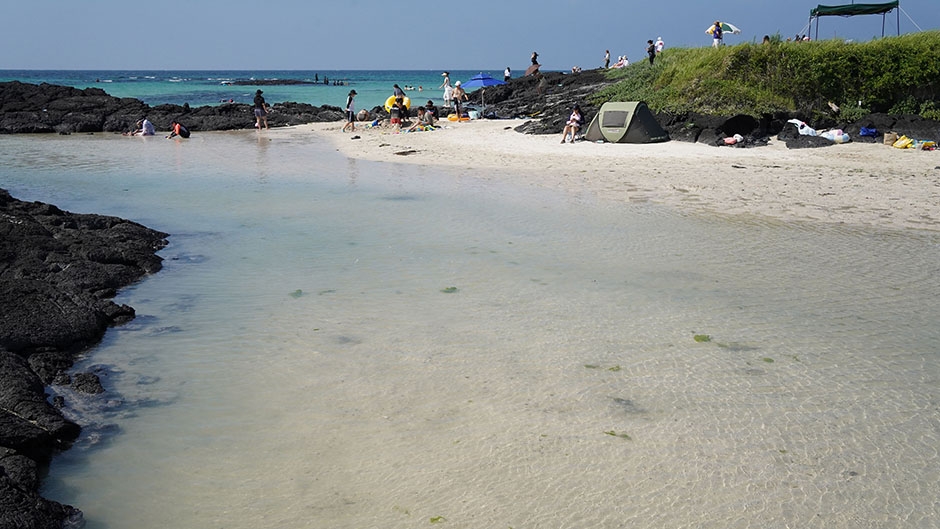 The beach is also a popular location for a variety of water sports such as surfing, snorkeling, and kayaking. Woljeongri Beach is popular among surfers because it has waves with a uniform x_height that are constantly coming in. The beach is also a part of the Gimnyeong-Hado Olle and Gimnyeong-Woljeong Geotrail Course on Jeju Olle Trail Route 20, and a great spot for tourists to take a break while taking in the beautiful scenery and cool scent of the sea.
