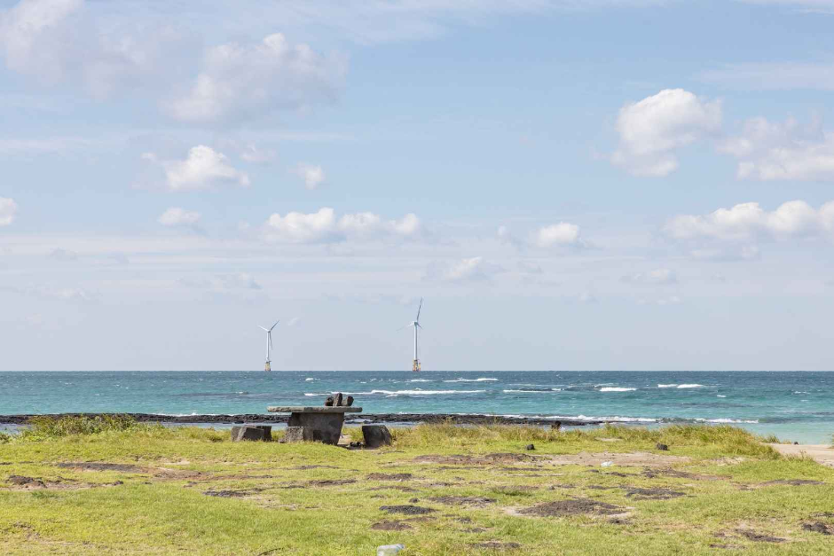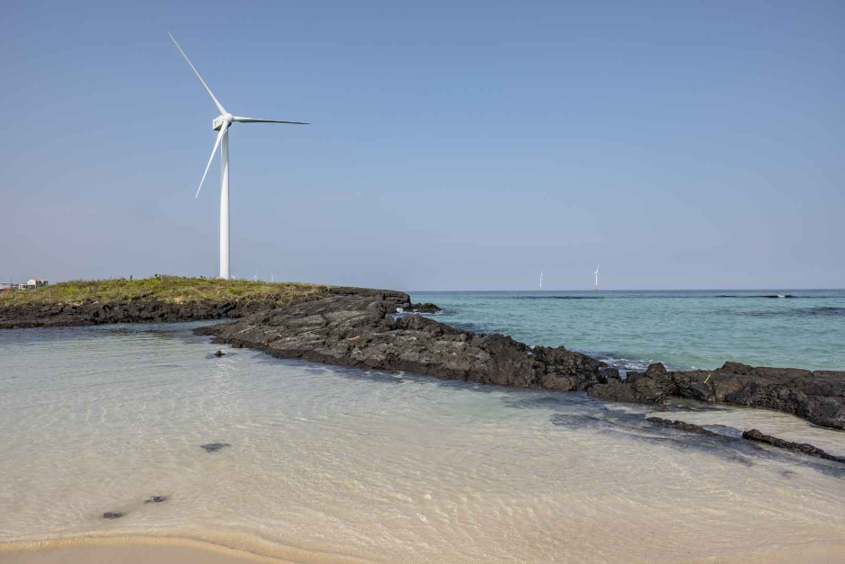 Woljeong-ri, a village located on the east side of Jeju Island, holds the meaning “the moon stays.” The beautiful emerald sea spreads out like a picture, and the bright moon shines above it. As more and more travelers visited the beach to appreciate its beauty, many restaurants, cafes, and lodging facilities started to form along the shoreline. Some cafes placed chairs for people to relax in while looking at the sea, which became an iconic photo spot of Woljeongri Beach.