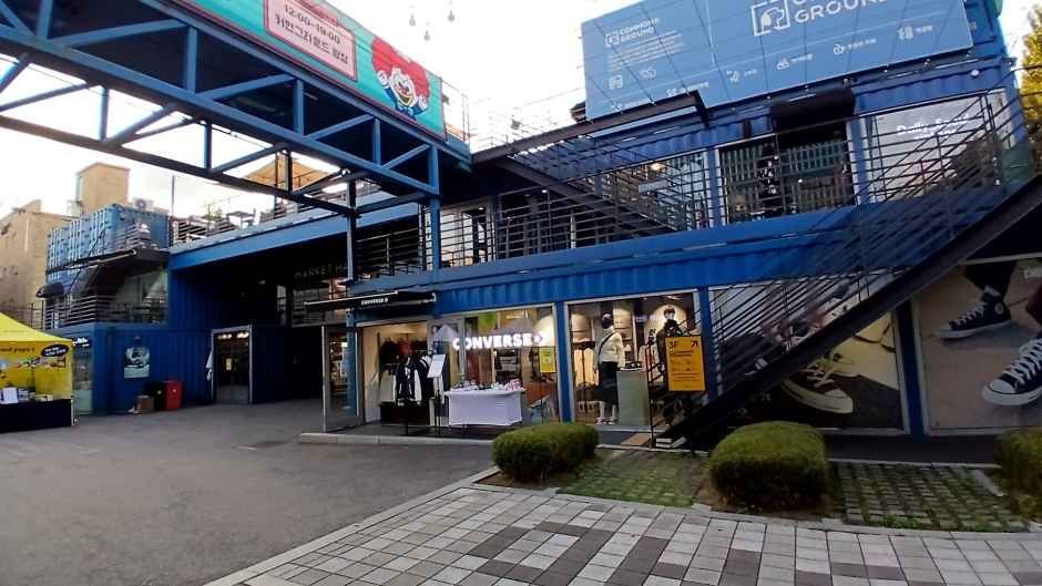 Common Ground is approximately 5,300 square meters in scale, made up of 200 large containers and is capable of transforming into different structures or moving into different places. Mega-sized mainstream brands are hard to spot in Common Ground. Instead, new and trendy mid-sized shops by up-and-coming new designers and editorial shops can be found here.