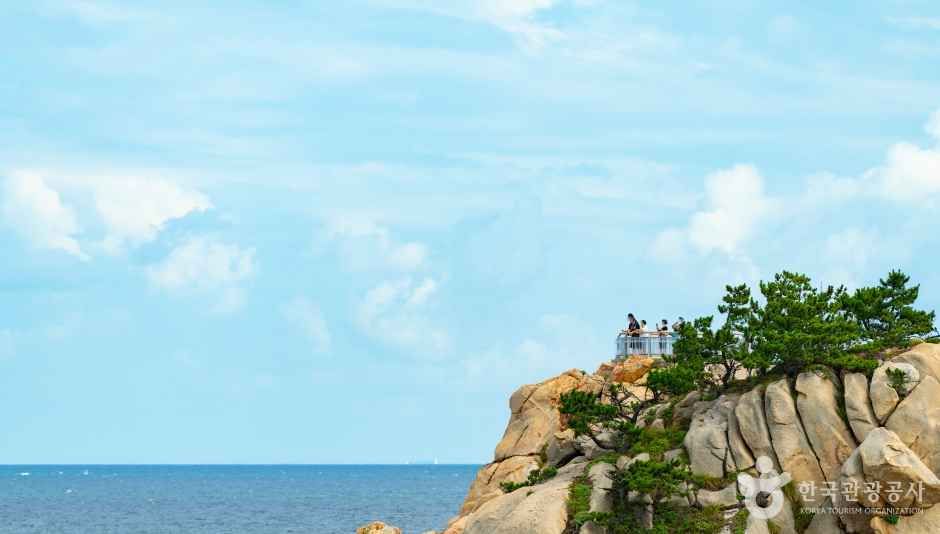 Daewangam Park is a seaside park located on the east coast. The park has a walking trail that passes by a forest of pine, cherry blossom trees, magnolias, camellias, apricots, and forsythia. This park is located at the end of the southeasternmost point facing the East Sea, and has a lighthouse that serves as a marker for fishermen and sailors out on the sea. The park is also home to Daewangam Rock that looks like a dragon rising up into the sky. It is connected to the mainland with an iron bridge and has an observation tower.