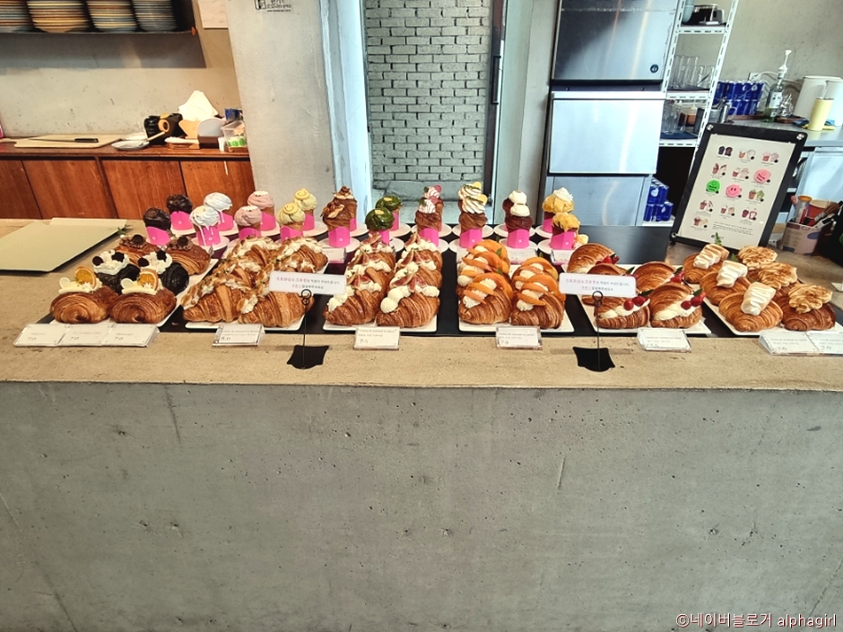 This bakery in Seongsu-dong boasts a colorful and unique visual, and is gaining popularity for its “cruffin,” a hybrid of a croissant and muffin. The menu includes a variety of breads and desserts, such as canelé, pound cake, crumble, and mille-feuille, making it a paradise for bread-lovers. The courtyard of the building, which was remodeled from an old factory, has thick bushes and a small square pond, offering a unique view. The floor-to-ceiling windows in this two-story building create the feeling of a wide, open space, making it full of photo opportunities.