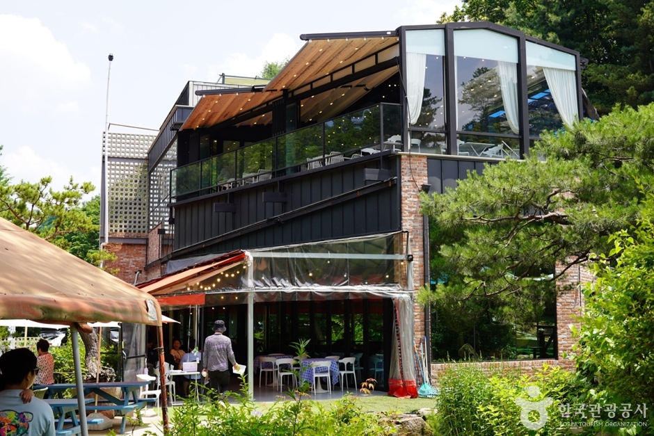 Dally.On is a bakery-café, offering an array of bread baked by a pastry chef, along with freshly roasted coffee. Patrons can enjoy their refreshments on an outdoor terrace, which boasts a view of the surrounding nature. The drink menu includes a selection of americano, caffè latte, cappuccino, ssuk latte (mugwort latte), and heugimja latte (black sesame latte). For desserts, the café serves maneulppang (garlic bread), sogeumppang (salted butter rolls), and pain d’or.