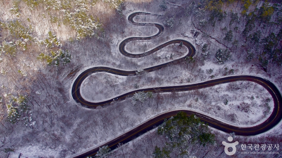 Bobaljae Pass is located 540 m above sea level on the northern side of Sobaeksan Mountain. It is also known as Godeuneomijae Pass. The S-shaped curve is known for wildflowers in spring and fall foliage in autumn, so one can either take a leisurely drive along the road or park one’s car at the observatory and get some pictures. Guinsa Temple and Ondal Tourist Area nearby are also good to visit.