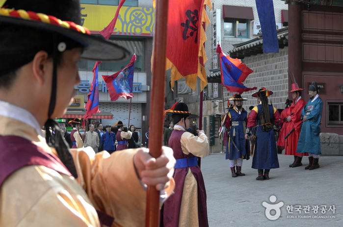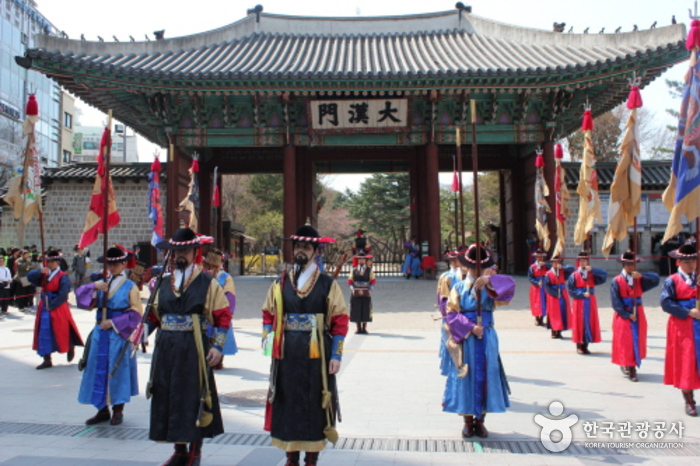 Deoksugung Palace has held a guard changing ceremony since 1996 after thorough historical research by leading historians. The ceremony, which is held in front of Daehanmun Gate of Deoksugung Palace, is a tradition similar to the Changing of the Guards at Buckingham Palace and offers a rare opportunity to experience royal culture. The royal gate is opened and closed at pre-determined times, and the gatekeepers in charge of guard duty and patrols hold a shift ceremony three times a day.