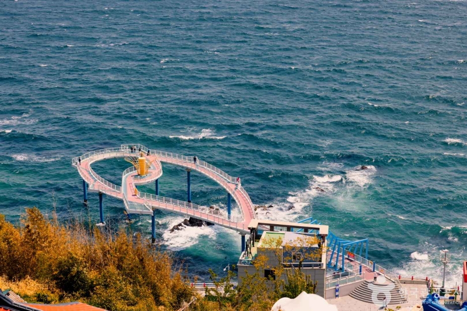 Dojjaebigol Sky Valley, located between Mukho Lighthouse and Wolsotaekji, provides a beautiful view of East Sea with various activities. Dojjaebi is a regional dialect of the word dokkaebi (Korean goblin). Opened in 2021, Dojjaebigol Sky Valley offers entertaining facilities such as Sky Walk, Sky Cycle, and Giant Slide as well as Dojjaebi Art House where visitors can buy souvenirs. Visitors can enjoy beautiful views and exciting activities such as 59-meter-high glass-bottom Sky Walk, floating in air with Sky Cycle, and 30-meter-long Giant Slide.