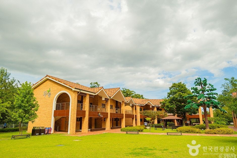 Situated at the entrance of Mureung Valley, this environmental disease prevention and management center is directly run by Donghae city. Environmental diseases are those that develop due to environmental factors, such as atopic dermatitis, asthma, and allergic rhinitis. This center, spanning approx. 24,000 square meters, consists of an eco-friendly healing lodging, a themed experience center, a health consultation room, a thermal therapy room, and a natural health food restaurant. The accommodation facility, built with eco-friendly materials such as red clay and Hinoki cypress, offers healthy accommodations as well.