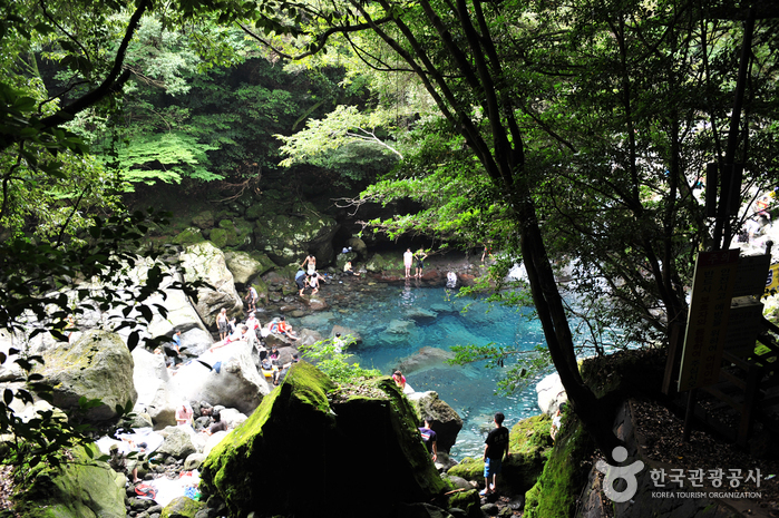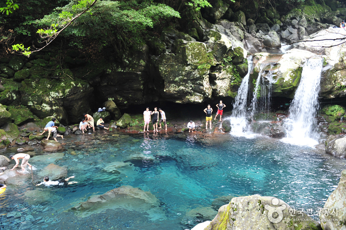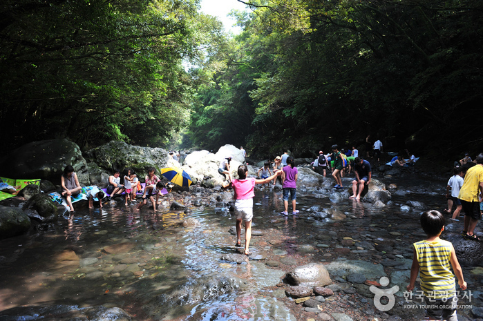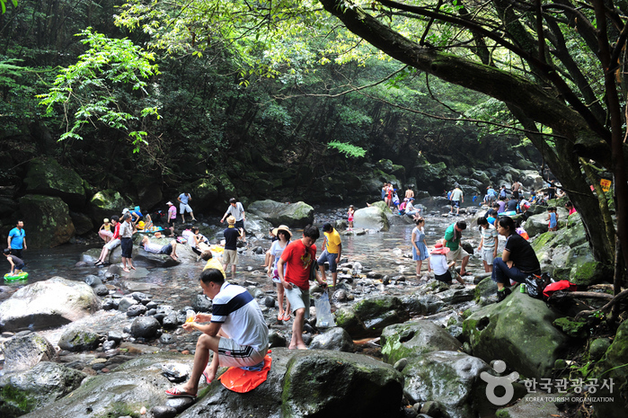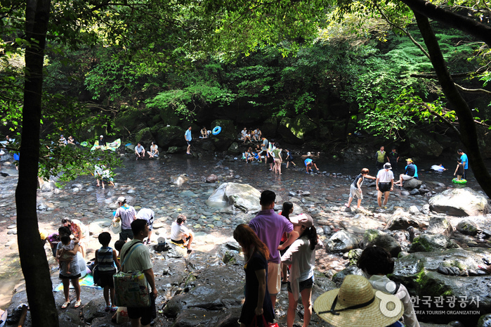 With a valley creek hidden by lush green forest leading to a 5-meter-high waterfall falling into a small pool of water, Donnaeko Resort is like a small paradise hidden in nature. The waters, flowing down from Hallasan Mountain, are clear and icy cold even during the hot summer season. The resort’s magnificent views and natural pool make the area a popular vacation destination.