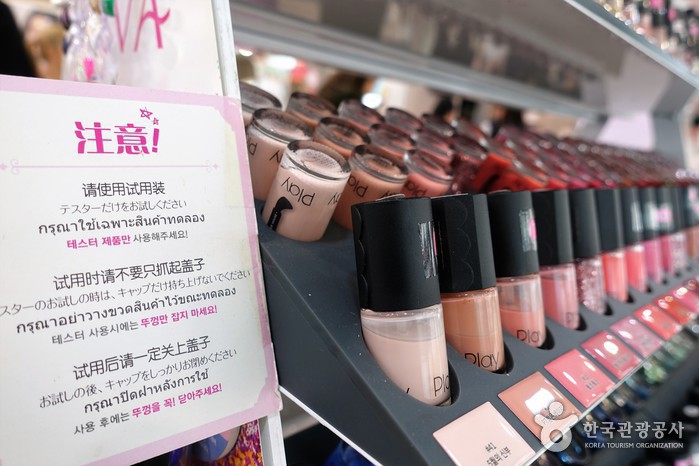 It is visited largely by foreign customers from Japan, Thailand, China and other East Asian countries. To facilitate an easy shopping experience, the shop always has foreign staff available to assist. The most popular items include creams made using snail extract, lipsticks and eye shadows. Etude House also has many sales on facial mask packs, and tax refunds are available.