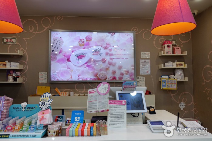 Etude House is a cosmetics brand that sells makeup, hair, and fragrance products. The Etude House Myeongdong Chungmuro Branch, located in the heart of a major shopping district, carries a wide selection of cosmetics that customers may test before purchasing. Moreover, the brightly lit store interior, designed with a princess bedroom decor, adds fun to the experience.