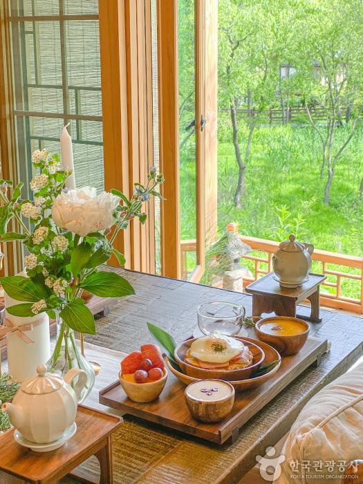 Eungjeongheon is a private hanok accomodation located in Eunpyeong Hanok Village in Seoul, where the calm ambience and sensuous interior of the hanok create a harmonious balance. Upon entering the building, you will find a dining room where breakfast is served and a daecheong maru (wooden-floored hall). On the second floor, you will find a numaru (balcony-like raised veranda), a bedroom, and a terrace from which you can enjoy a panoramic view of Bukhansan Mountain and Hanok Village. A hearty breakfast is provided, as well as a variety of activities, including outdoor picnics in the backyard, illustrated gifts, yoga and meditation sessions, and foot baths. Bukhansan Dulle-gil Course 9 and Jingwansa Temple are within a 10-minute walk.
