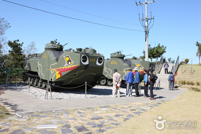 Ganghwado Jejeokbong Peace Observatory was constructed in the northern area of the Civilian Restricted Zone in Cheolsan-ri, Yangsa-myeon. Entry to this area was strictly prohibited to the general public until 2008. The observatory allows visitors to take a closer look at the natural beauty the lies beyond the northern border. The observatory consists of four floors. The basement and fourth floor are used by the military; the first floor sells regional produce from Ganghwado Island and specialty products from North Korea, and the second and third floors make up the audio-visual rooms with materials related to North Korea and an observatory where one can observe the Northern territory from afar.