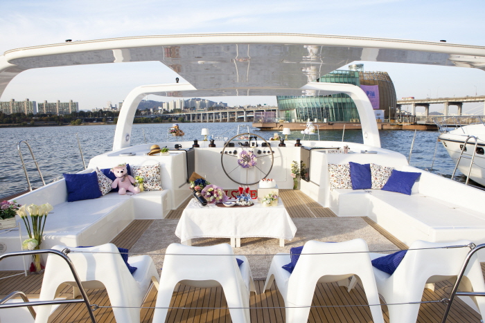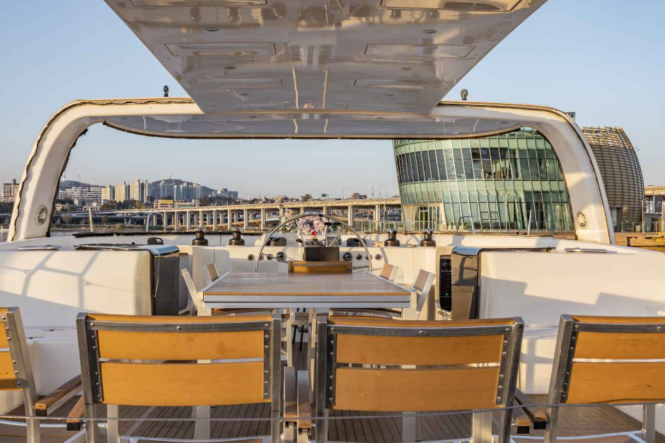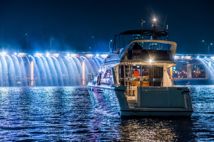 Golden Blue Marina, located on Some Sevit, is a cultural destination on the water, offering a unique way to enjoy views of Seoul along the Hangang River. This popular spot for parties and proposals helps you cruise through the city on a luxury yacht, creating a private retreat. In the evening, you can see the N Seoul Tower and the Rainbow Fountain illuminated by 200 lights, making it feel like you’re floating through the Milky Way.