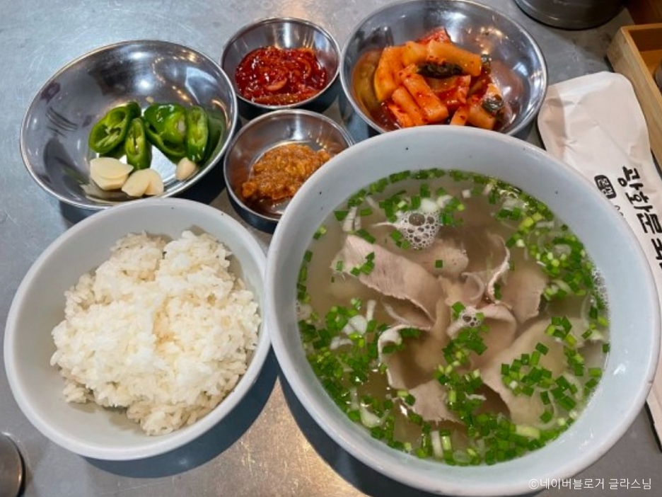 Gwanghwamun Gukbap is a dwaeji gukbap (pork and rice soup) restaurant operated by Chef Park Chanil. Its distinctive feature lies in using only black pork loin and shoulder to enhance the flavor. The signature dish is the dwaeji gukbap, which boasts a mild, clean, and deep flavor. In addition to that, they also offer dwaeji suyuk (boiled pork slices) and pisundae (sundae with pork blood). Known for its authentic taste of rice soup and rich broth, it’s a popular destination for many.