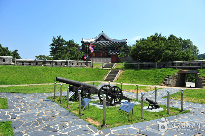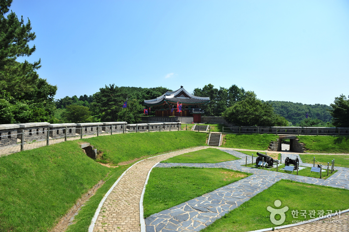 The battlefield ruins of the fortress and the gate towers such as Anhaeru, Gwangseongdon, Sondolmokdon, and Yongdudon were repaired