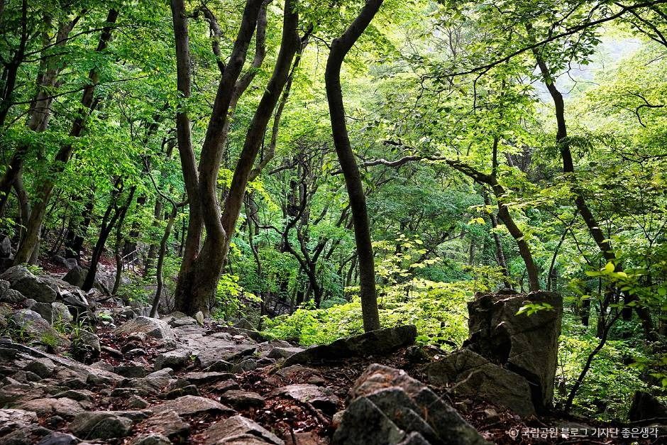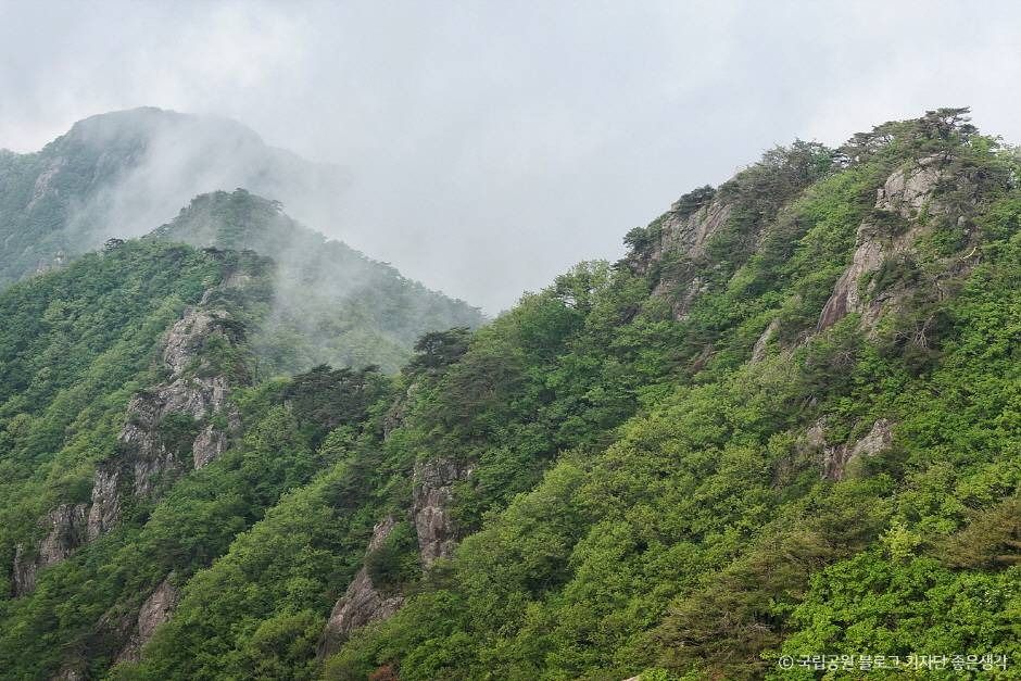 Gyeryongsan National Park stretches across the cities of Daejeon, Gongju, and Nonsan in Chungcheongnam-do and was made a national park on December 31, 1968. The name of the mountain comes from the fact that the ridgeline looks like a dragon wearing a chicken’s crest on its head. The topographical features are what make this mountain stand out and its mysterious folklore is what makes it so interesting. The park features many peaks, including the main peak Cheonhwangbong (alt. 847 m), as well as Sambulbong, Yeoncheonbong, and Gwaneumbong Peaks. This mountain is famous for its many interesting sites, with its fantastic rock structures, attracting hikers from across the country.