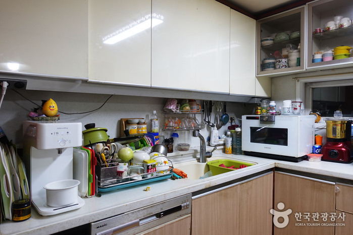 Gyodae Guesthouse is located in Seocho Samsung Raemian Apartments, near Gyodae station, Seoul. Residents share the space in a typical Korean home, with two separate rooms – each equipped with a computer and desk – plus shared kitchen, bathroom, and living room with TV and sofa, Foreign students studying at nearby universities often stay here for extended periods. A laundry service is provided free of charge.