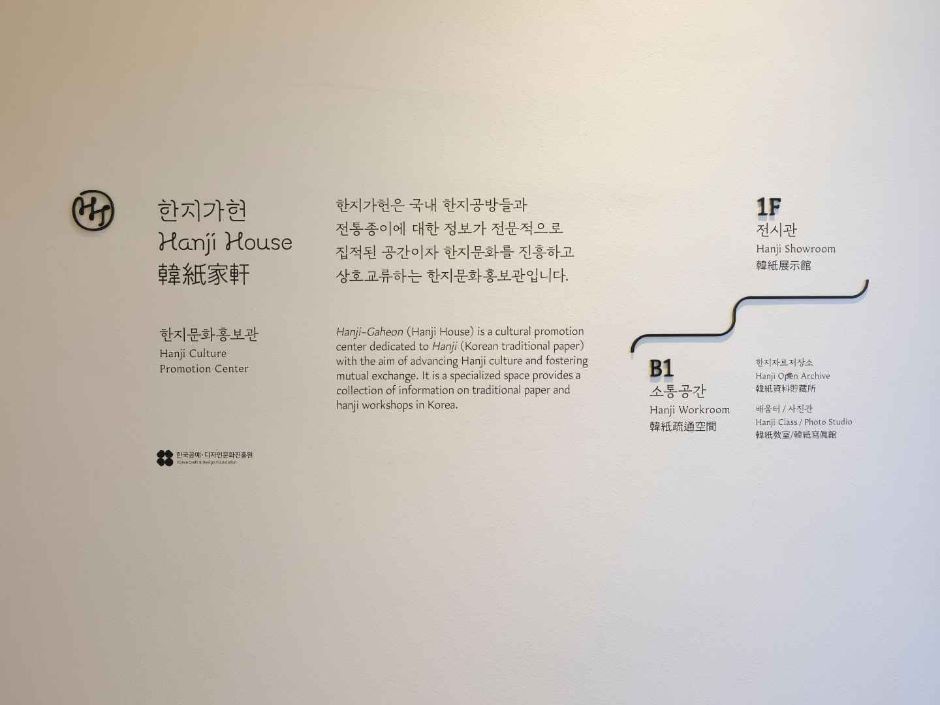 Hanji House was founded to pass on the cultural heritage of hanji, traditional Korean paper, as well as to promote its excellence and uses in everyday life. The center is operated by Korea Craft & Design Foundation, and offers a variety of programs that consist of exhibitions, hands-on activities, classes, and marketing hanji products. On the first floor is Hanji Showroom, where various exhibitions take place to showcase hanji of the past and the present. The basement floor comprises Hanji Open Archive, Hanji Print Studio, and Hanji Workroom, where most of the hands-on activities and classes are held. Hanji House also offers a docent program for exploring the whole area.