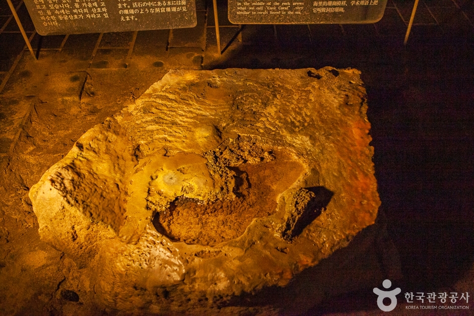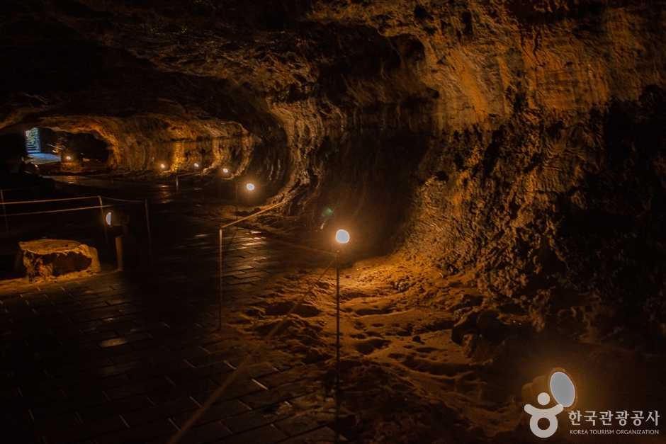 Hyeopjaegul Lava Tube is one example of the lava tube systems of Jeju Island, along with Hwanggeumgul, Socheongul, Ssangyonggul and Manjanggul Lava Tubes. The cave is approximately 200 meters in length, 10 meters in x_width and 5 meters in x_height. It is thought to have been created by the lava that erupted from Hallasan Mountain some 25 million years ago. This cave uniquely contains features of both lava and limestone caves. The entire area surrounding the cave is a huge stratum of seashells and sand, while the interior of the cave has a mystical ambience due to its various formations such as stalactites and stalagmites, hanging from the ceiling and sprouting up from the bottom of the cave. The cave also features pillars formed when stalactites and stalagmites join together. The cave walls are covered in lime, which at times looks like beautiful cave paintings. The temperature inside the cave stays at 17~18℃ throughout the year, making the cave a welcome escape from the summer heat and a great place to keep warm during winter.