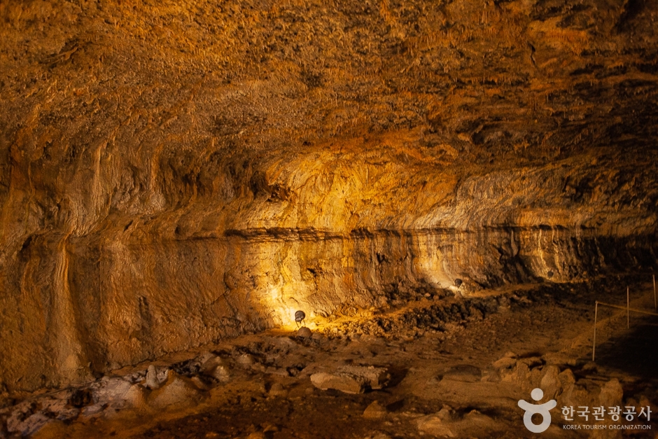 Ssangyonggul Cave, a designated Natural Monument, is one of the representative lava tubes of Jeju Island along with Hwanggeumgul, Socheongul, and Manjanggul caves. The cave measures approximately 400 meters in length, 6 meters in x_width, and 3 meters in x_height. It is thought to have been created by lava that erupted from Hallasan Mountain some 25 million years ago.