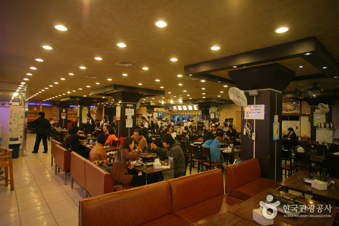 Mabongrim Halmeonijip specializes in instant tteokbokki. The spicy and flavorful tteokbokki with gochujang sauce is their signature dish. It is served in a hot pot, it can be customized with rice cakes, fish cakes, extra ramyeon noodles, mandu, and other various ingredients. The restaurant is so famous that it is said to be the original restaurant of tteokbokki, and has been featured in several TV programs.