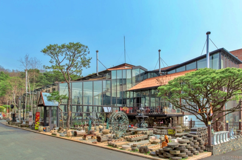 Ijin Sanghoe is a complex cultural space with a café, a Korean table d’hote restaurant, an Indian curry restaurant, and a prop shop on a large site of 16,000 m2. As befitted for a representative city of ceramics, this space is filled with ceramics right from the entrance. In addition, there are many sculptures outside along the trail, like an outdoor art museum, providing many things to look around. The bakery café, the most famous spot in Ijin Sanghoe, has different designs for each seat, making it fun to choose where to sit. It sells many unique breads made using Icheon rice and various cakes. In particular, visitors can take the ceramic plates along with the bread they picked to their table. A rice ball-shaped bread and a fried egg-shaped bread made from Icheon rice are especially popular. It is a great place to be enjoyed by anyone, regardless of gender or age, as it is a large space full of attractions.