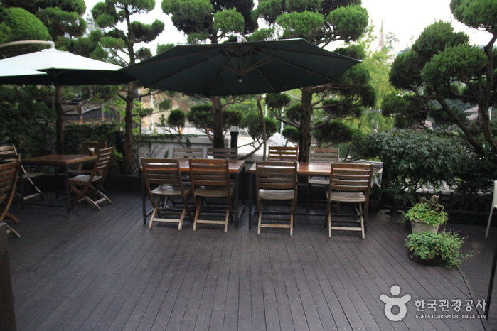 Club Espresso is a café that opened in 1990, constructed with red bricks. They roast their own coffee beans, offering a diverse coffee menu. The Moon Blend, a blend of Colombian, Brazilian, Ethiopian, and Guatemalan beans, is a favorite among regulars and is made with the coffee bean ratio favored by former President Moon Jae-in. Nearby attractions include the Yun Dongju Hill (Cheongun Park) and the Yun Dong-ju Literary Museum, dedicated to the poet beloved by Koreans.