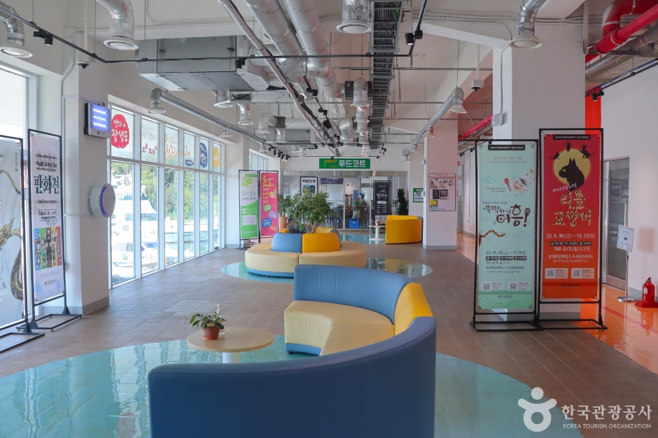 The Jangsaengpo Culture Warehouse was originally a cold storage facility that was renovated into a cultural complex in 2021. Spanning six floors, the complex features various galleries, a book café, interactive spaces, a communal workspace, and a rooftop garden offering panoramic views of the surrounding area.