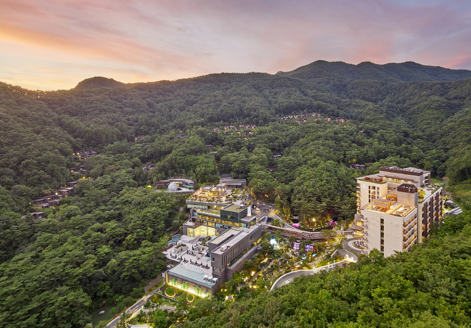 Located between two mountains, the resort offers perfect views from every angle. Anions and phytoncides from the forest help relax the restless mind and body.