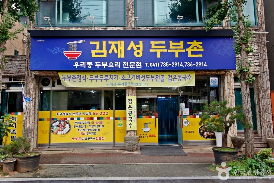 Kim Jaesung Dunuchon is a specialty restaurant where you can taste homemade bean curd dishes. They make bean curd using traditional methods with Korean soybeans, resulting in a smooth and savory flavor. Their bean curd is known for its tender texture and richness, especially when enjoyed with aged kimchi (fermented cabbage kimchi) matured for three years. Their menu includes dubuchon jeongsik (tricolor bean curd and boiled pork slices set menu), dubu bossam (napa wraps with pork and bean curd), dubu baekban (bean curd set menu), dubu duruchigi (stir-fried bean curd), and sogogi beoseot dubu jeongol (beef, mushroom and bean curd hot pot).