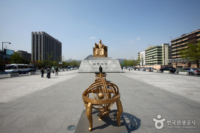 King Sejong Statue can be found at Seoul’s Gwanghawmun Square. The statue commemorates King Sejong the Great (1397-1450, reign 1418-1450), the fourth king of Joseon (1392-1897). He is thought to be the greatest king in Korean history, for he is credited with great developments in science and technology, expansion of Joseon’s territory, and the creation of the Korean script, [Hangeul]. King Sejong’s likeness can be found on the 10,000 won bill as well.
