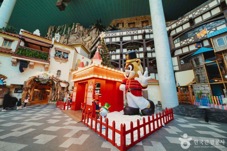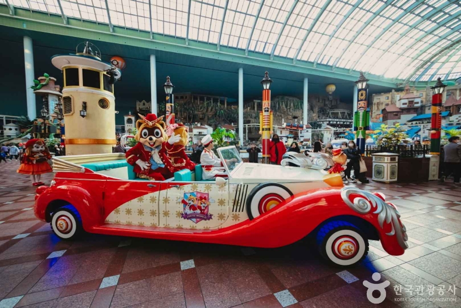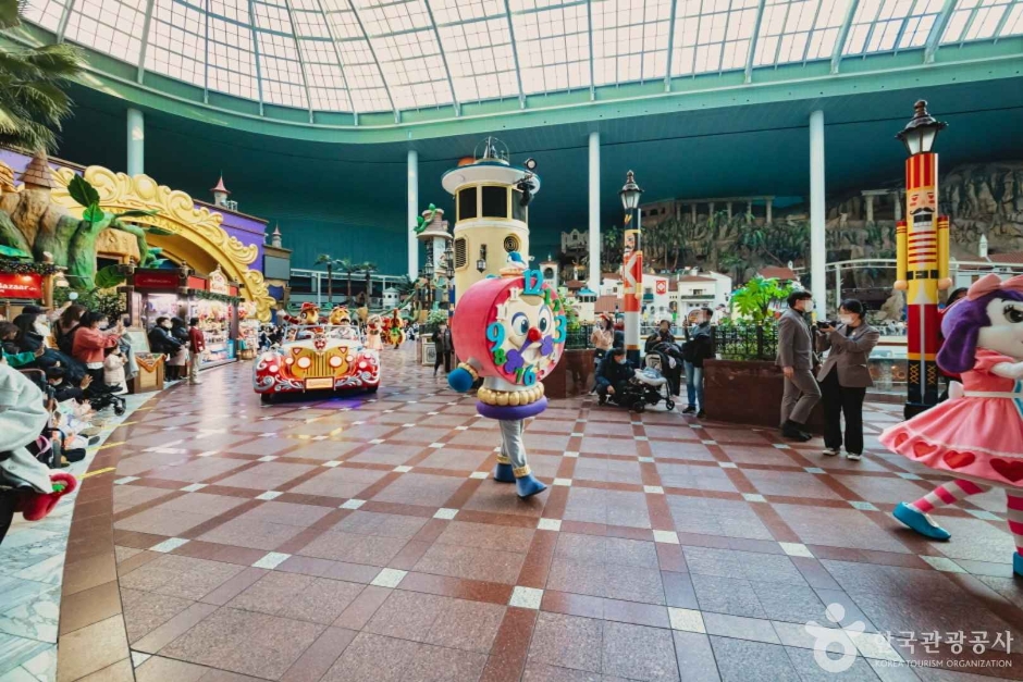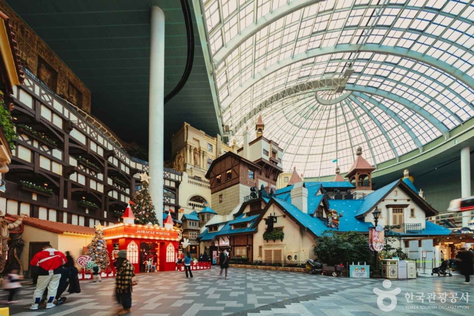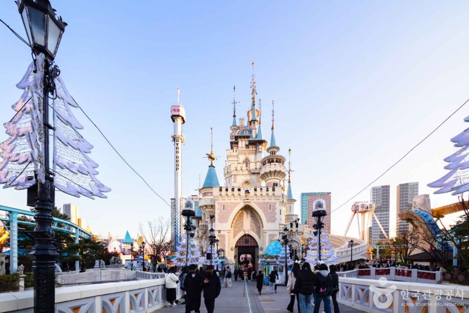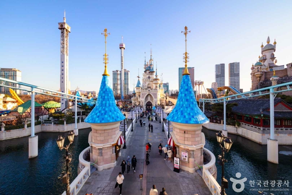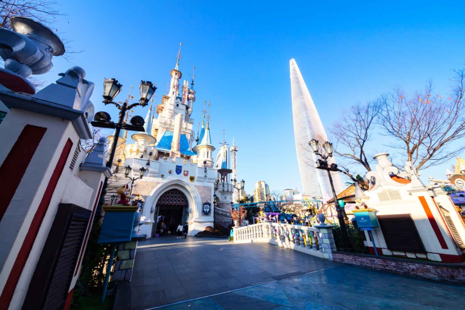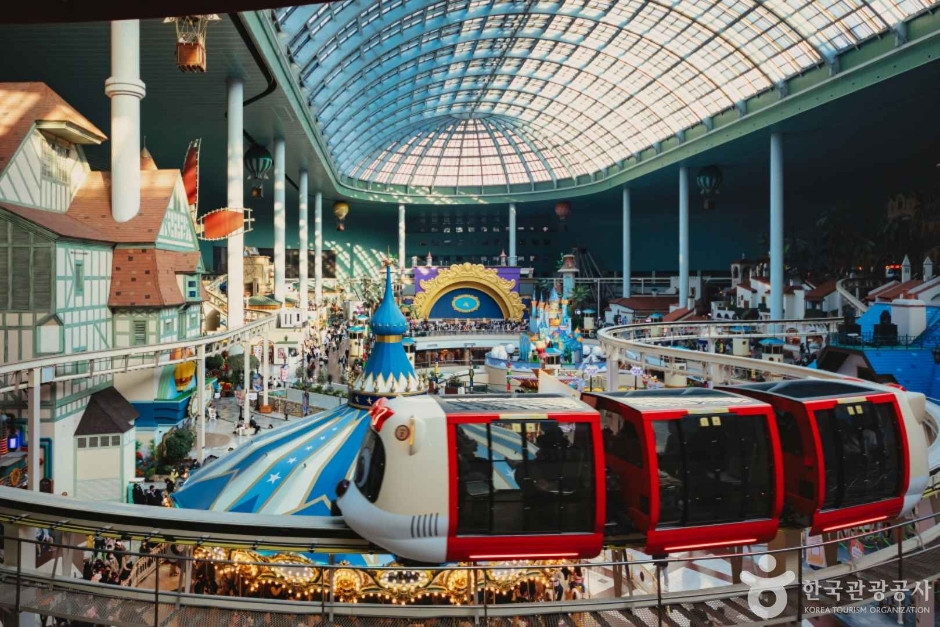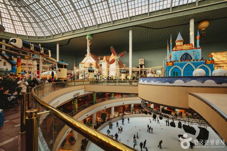 Lotte World Adventure attractions, children rides and play area, ice rink, folk museum, restaurants, Magic Island, gift shops, game facilities, convenience stores, etc.